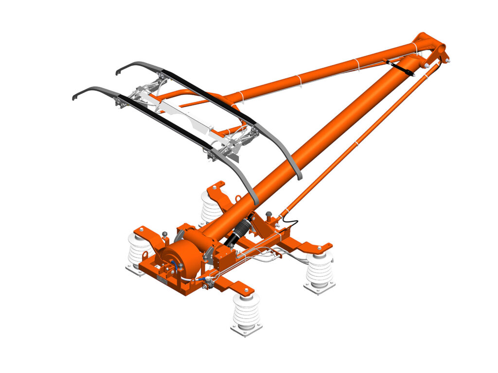 • With a 3600 mm working range, the high reach pantograph provides smooth and precise vertical movement through its pneumatic actuator, ensuring accurate alignment with overhead wires at significant heights.